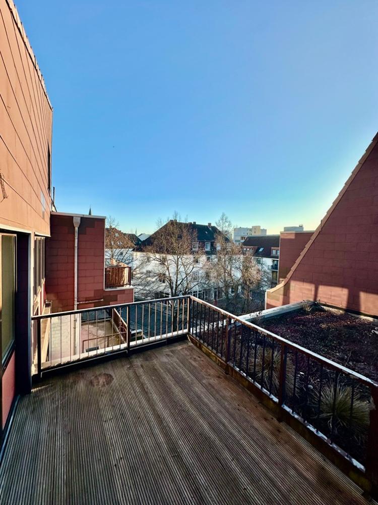 Diese Wohnung befindet sich im 3. Obergeschoss (ganz oben) einer gepflegten Wohnanlage. Ein Aufzug ist vorhanden. Eine große Dachterrasse mit ca. 10 m² (Nettofläche) bietet einen herrlichen Ausblick und ist zudem nach Süd/West ausgerichtet. Über eine massive Holztreppe gelangt man zur Galerie. Hier ist ausreichend Platz für den Schlafbereich, Schränke und einen Homeoffice- Platz.